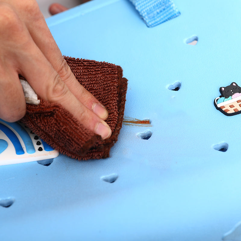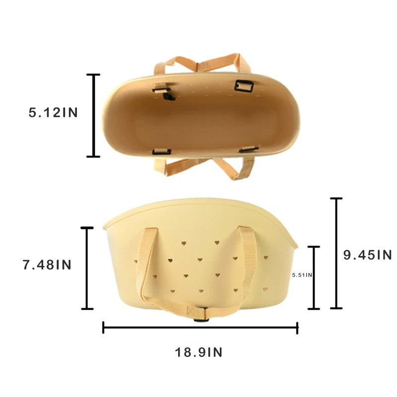 The bag is made from high-quality EVA (Ethylene Vinyl Acetate) material, known for being lightweight, durable, and eco-friendly.
